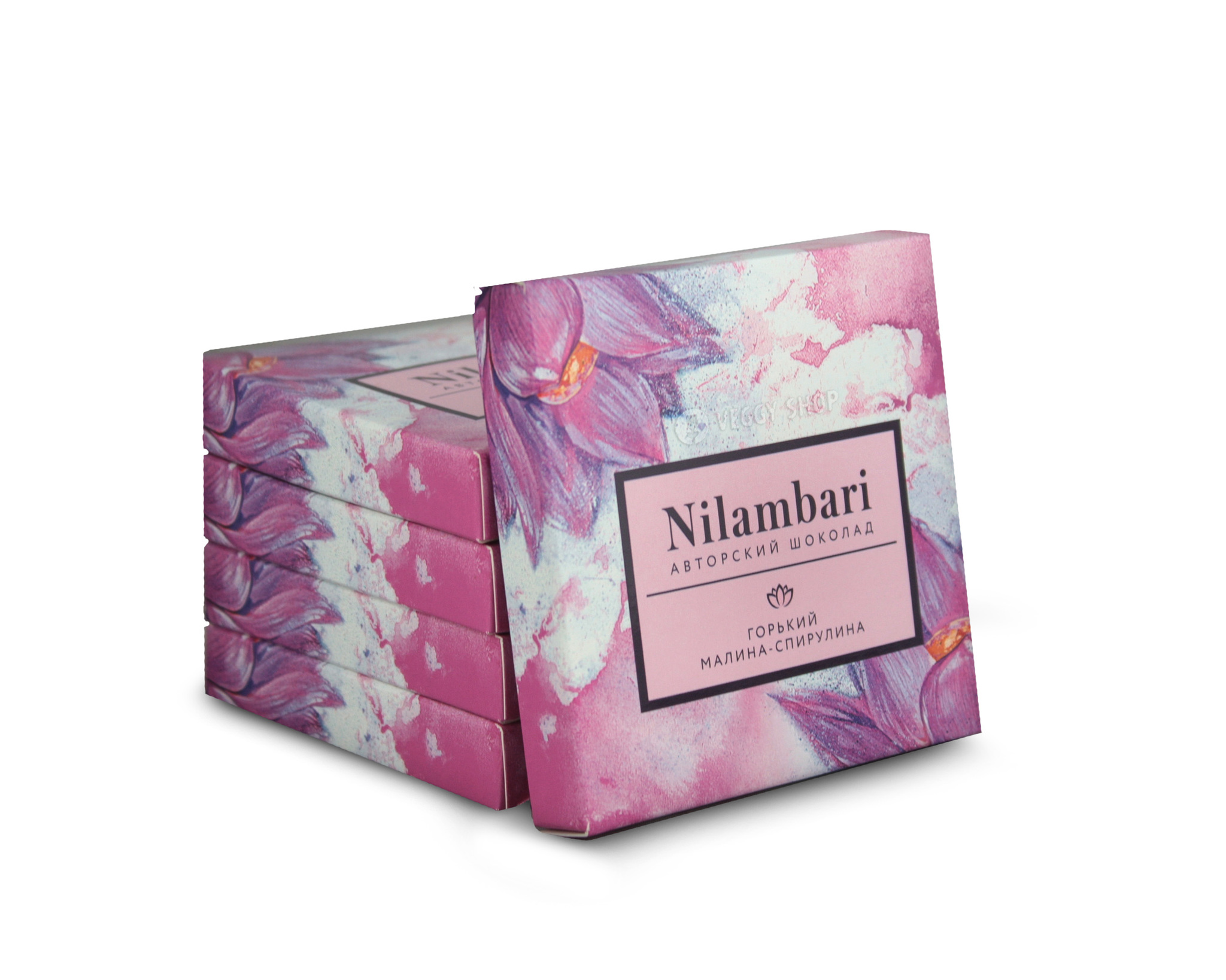 Шоколад Nilambari Веганский горький с малиной и спирулиной, 65 г