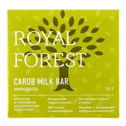 Шоколад ROYAL FOREST молочный из кэроба с миндалем, 75 г