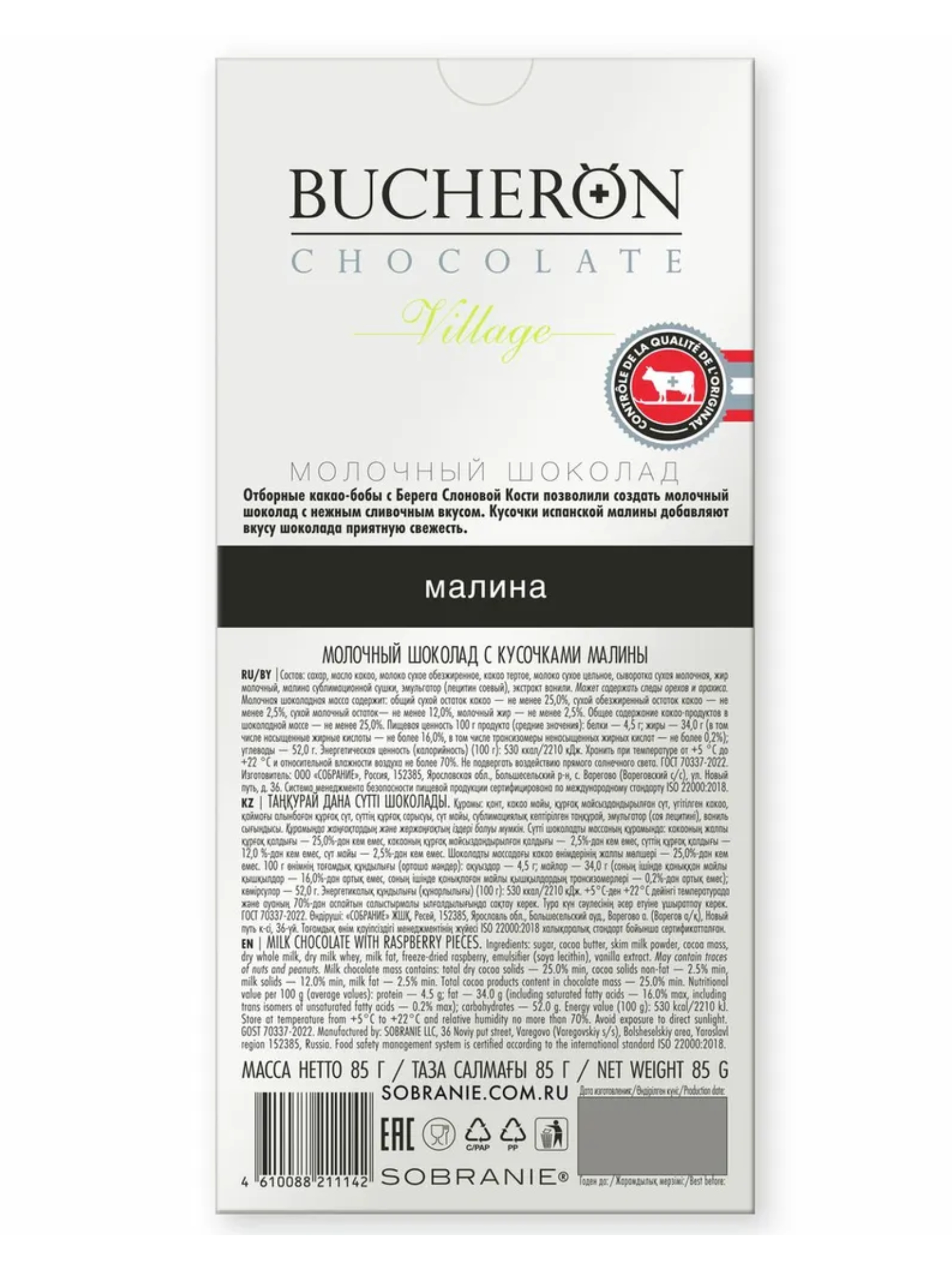 Шоколад молочный Bucheron Village с малиной 85 г