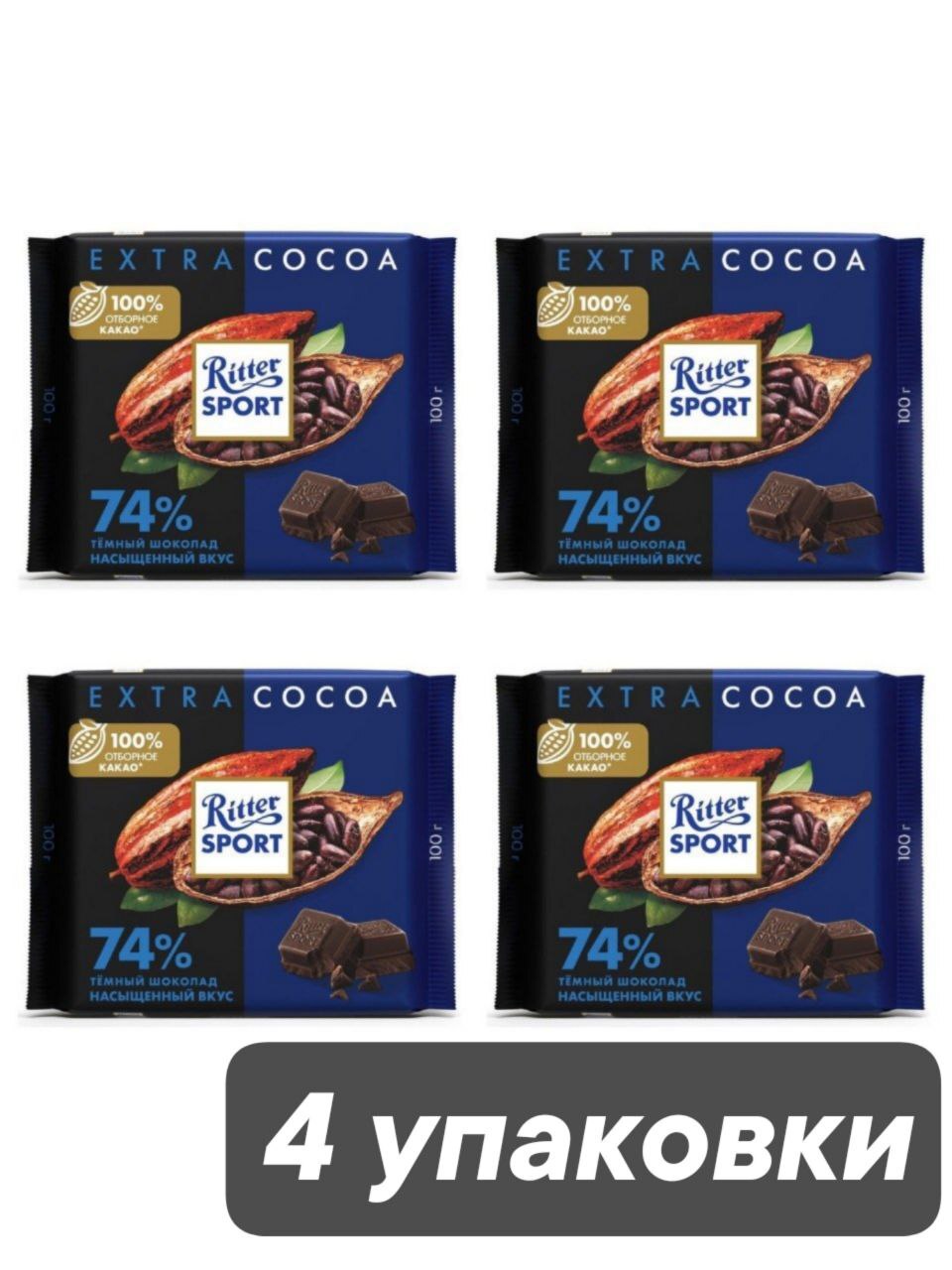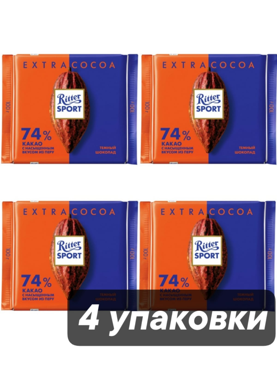 Шоколад тёмный Ritter Sport 74% 100 г x 4 шт