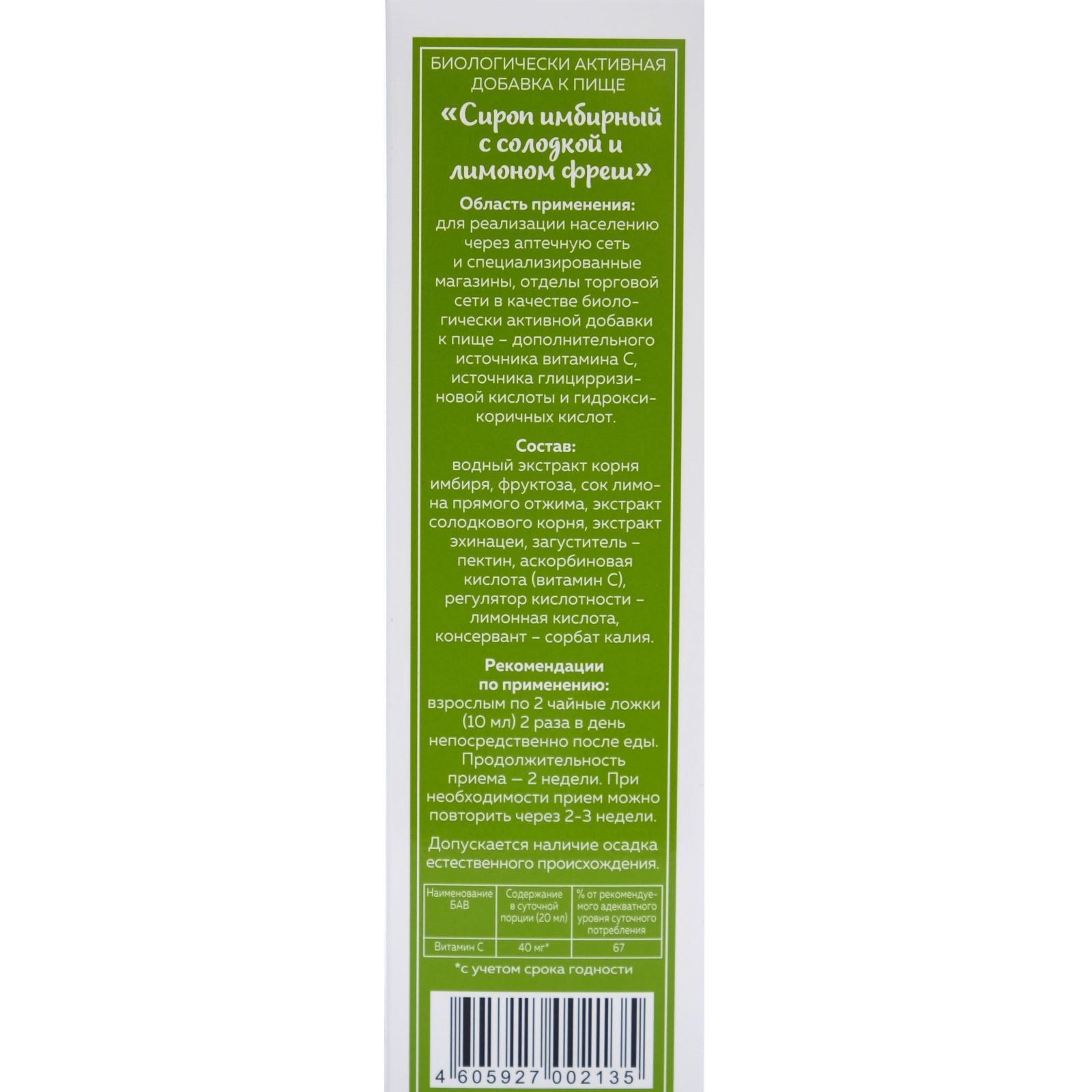 Сироп имбирный с солодкой и лимоном фреш, 250 мл