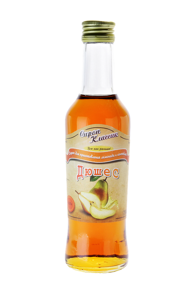 Сироп Дюшес. В составе сиропа специально подготовленная вода, сахар, лимонная кислота, ароматизатор. В обязательном порядке присутствует консервант. Срок годности 12 месяцев.