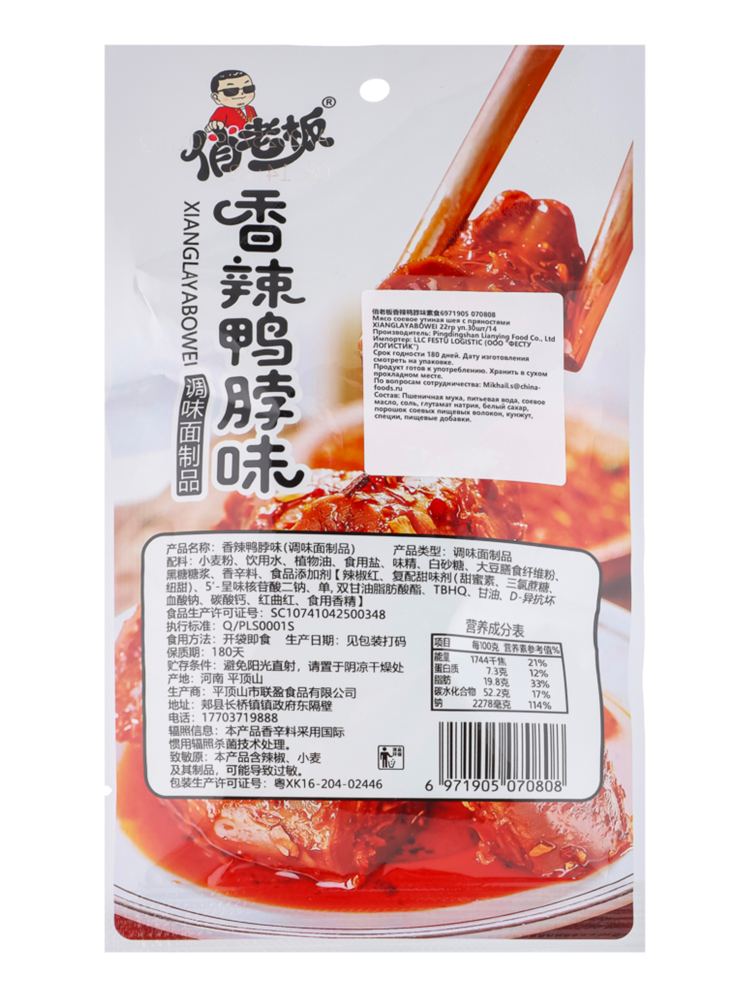 Снеки соевые Острые утиные шейки Xianglayabowey 18 г