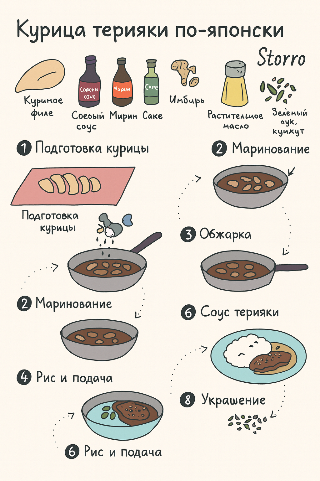 Предлагаю приготовить курицу терияки по-японски – одно из самых узнаваемых блюд японской кухни 🍱 Нежные кусочки курицы в блестящем карамельном соусе с лёгкой сладостью и насыщенным вкусом соевого соуса отлично сочетаются с рисом и овощами. Блюдо несложно повторить дома, а аромат сразу напомнит уютный японский ресторан.