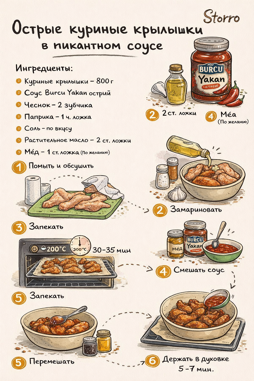 Острые куриные крылышки в пикантном соусе — популярное блюдо, вдохновлённое американской кухней (Buffalo wings), которое идеально подойдёт для ужина, вечеринки или просмотра фильмов. Благодаря соусу Burcu Yakan крылышки приобретают насыщенный вкус с яркой остротой и аппетитной корочкой 🔥🍗