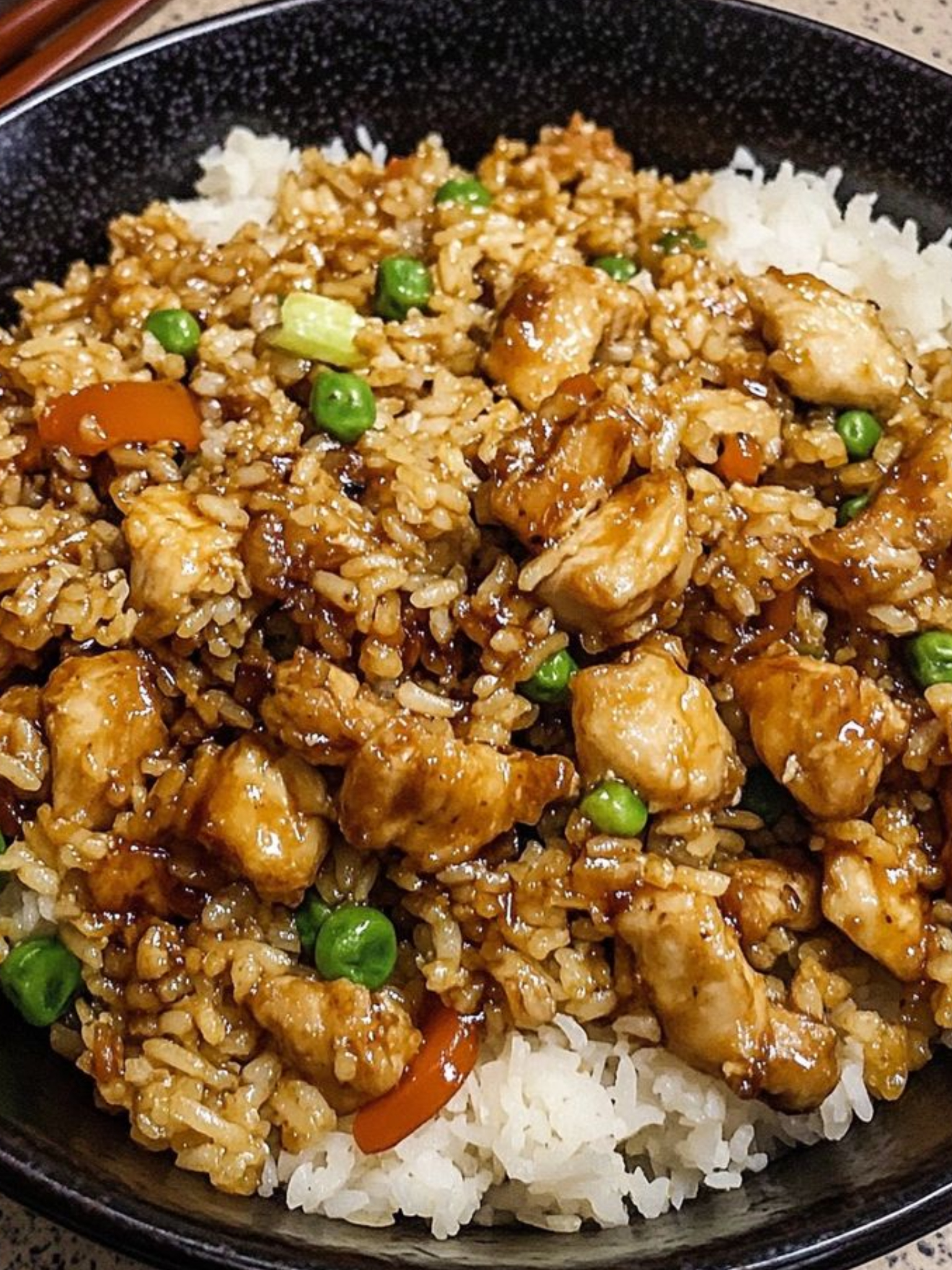 Рецепт блюда с использованием соуса «Соус Pearl River Bridge Соевый светлый»: жареный рис по-китайски с курицей 🍚🥢
