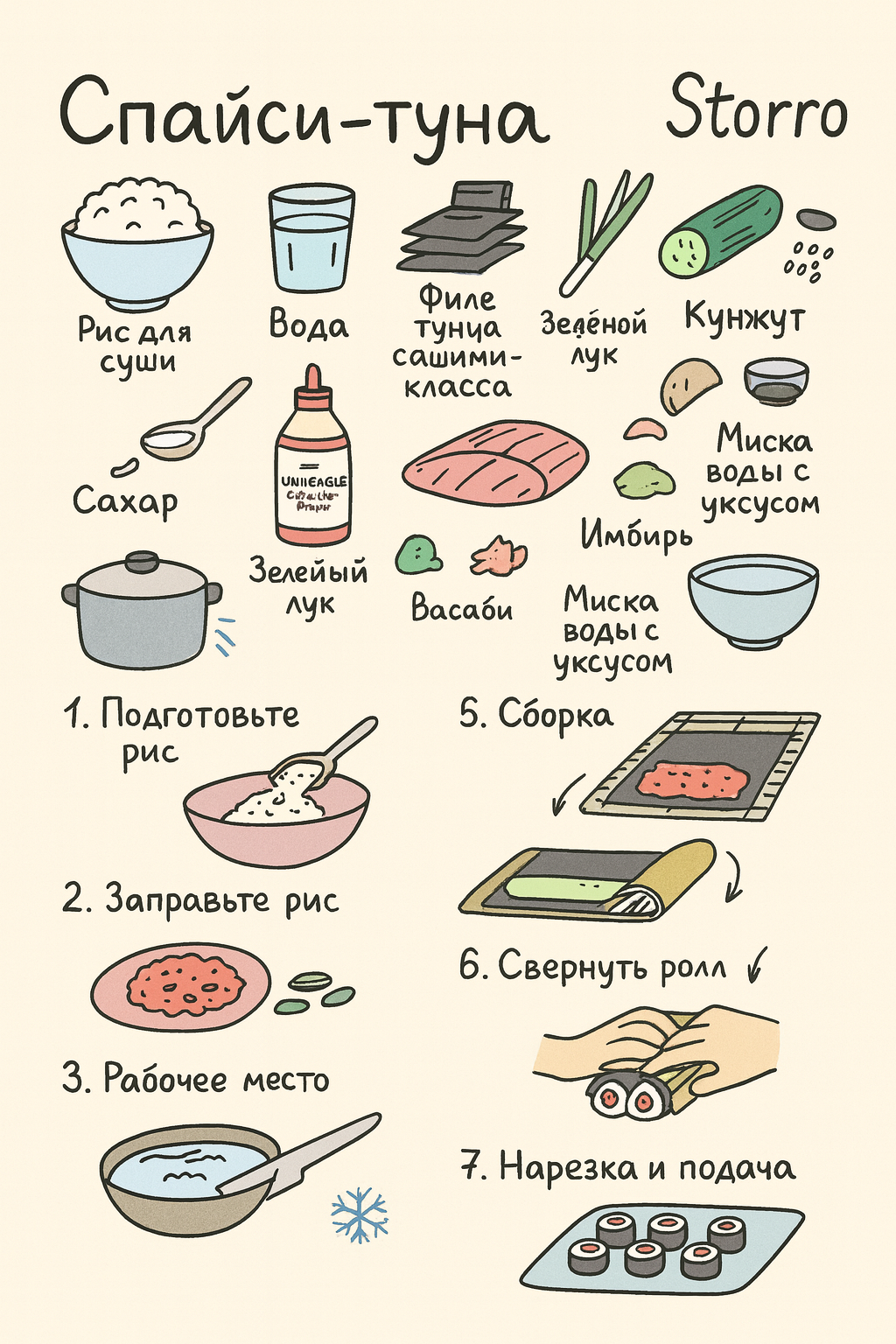Для сырой рыбы используйте только сашими-класс и держите холодной. Если сомневаетесь — берите качественного консервированного тунца.