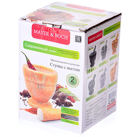 Ступка с пестиком MAYER&BOCH изготовлена из прочного мрамора с восковым покрытием. Ступка станет незаменимой вещью для приготовления свежемолотых специй и приправ, измельчения трав, а также таблеток. Свежемолотые специи имеют более насыщенный аромат, поэтому с такой ступкой ваши блюда всегда будут вкусными и ароматными. В набор входит ступка с пестиком. Ступку легко и просто мыть.