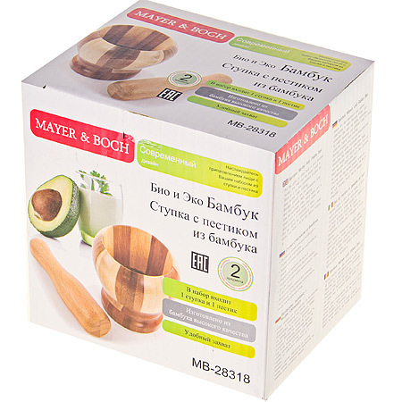 Ступка с пестиком MAYER&BOCH изготовлена из бамбука. Ступка станет незаменимой вещью для приготовления свежемолотых специй и приправ, измельчения трав. Свежемолотые специи имеют более насыщенный аромат, поэтому с такой ступкой ваши блюда всегда будут вкусными и ароматными. В набор входит ступка с пестиком. Ступку легко и просто мыть.