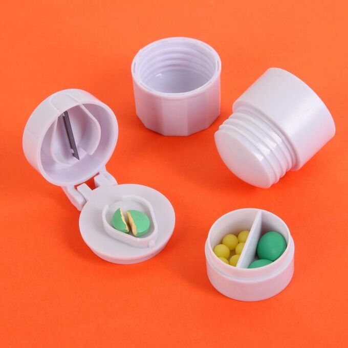 Таблетница с делителем, размельчителем и мензуркой, цвет белый