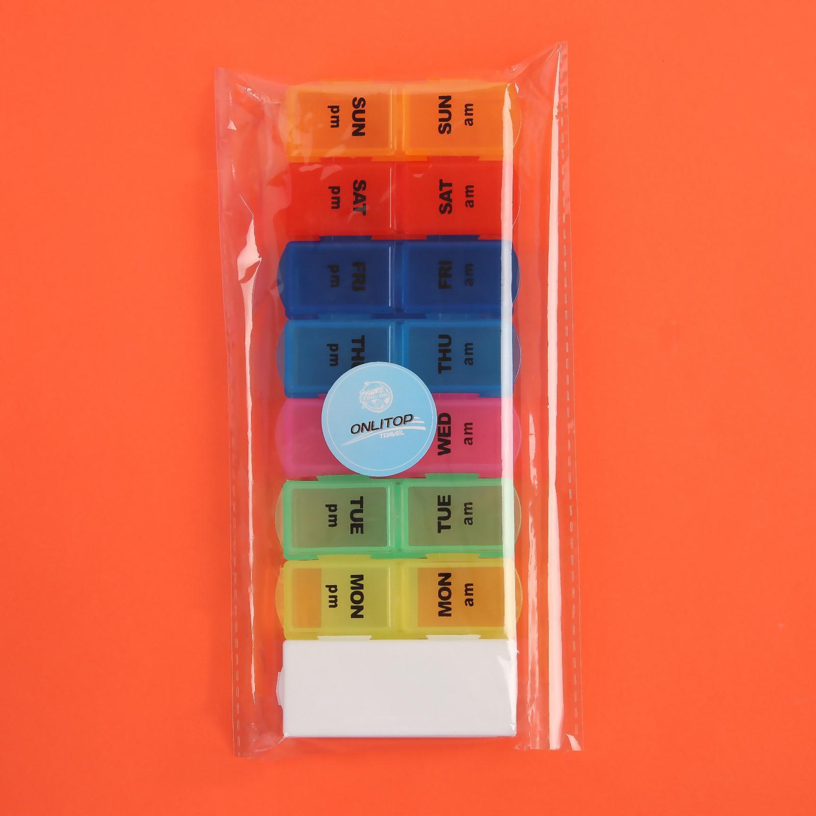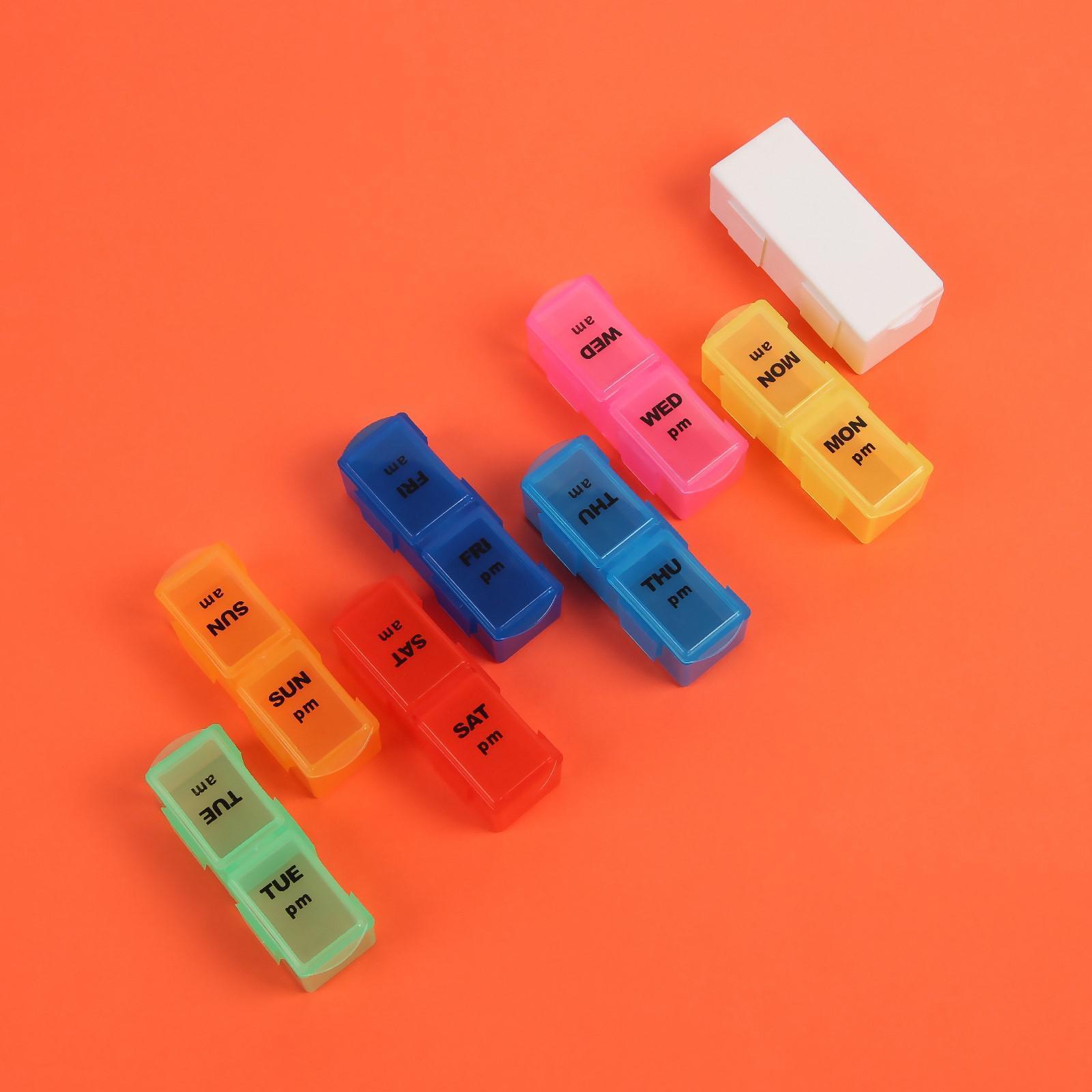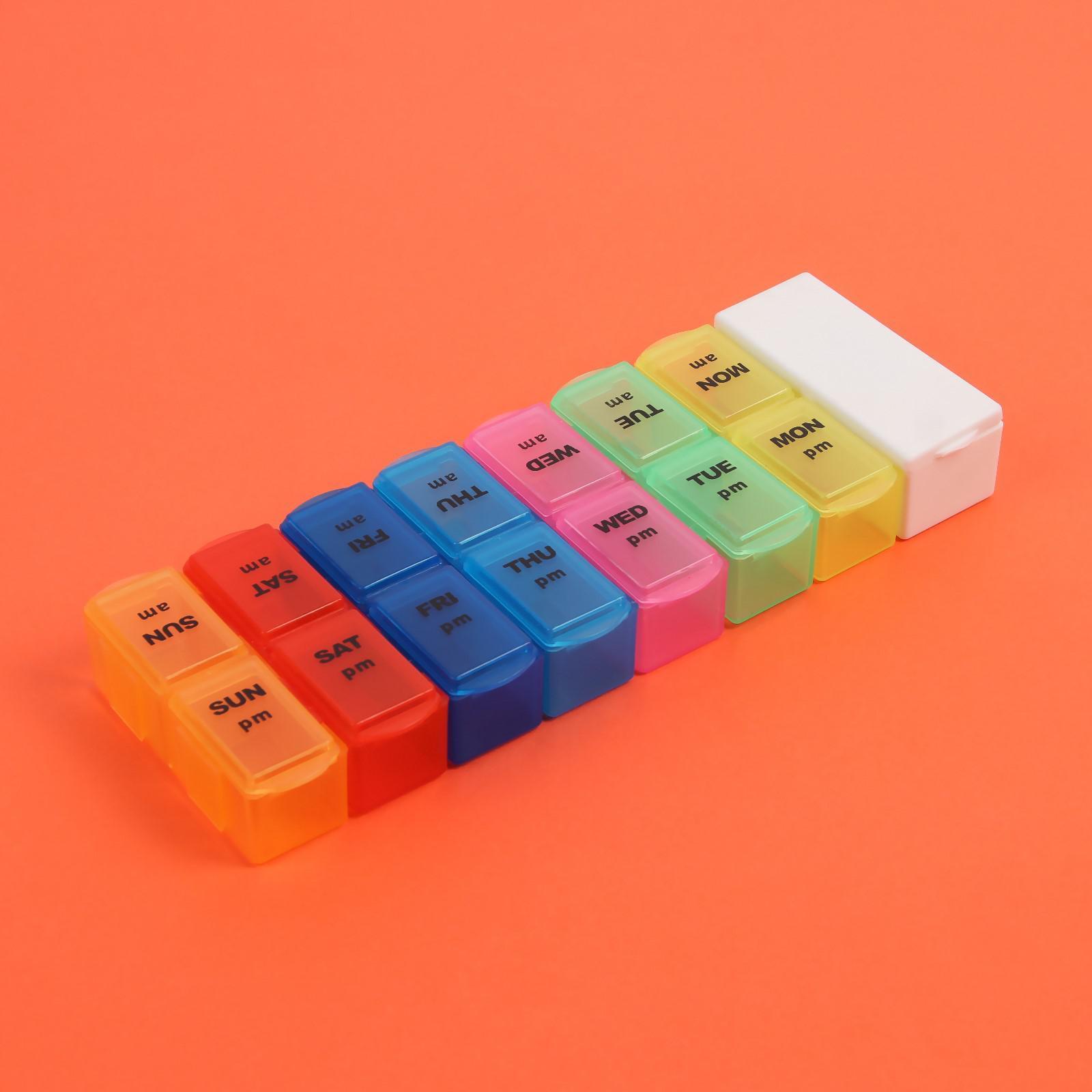 Таблетница-органайзер Неделька, с делителем, утро/вечер, 7 контейнеров по 2 секции, цвет МИКС