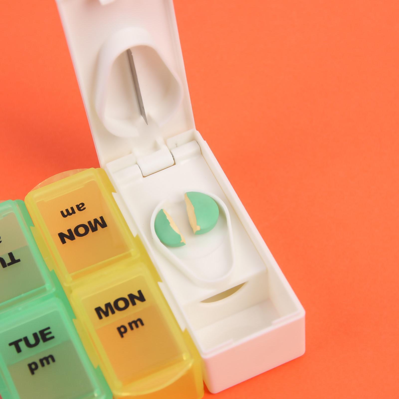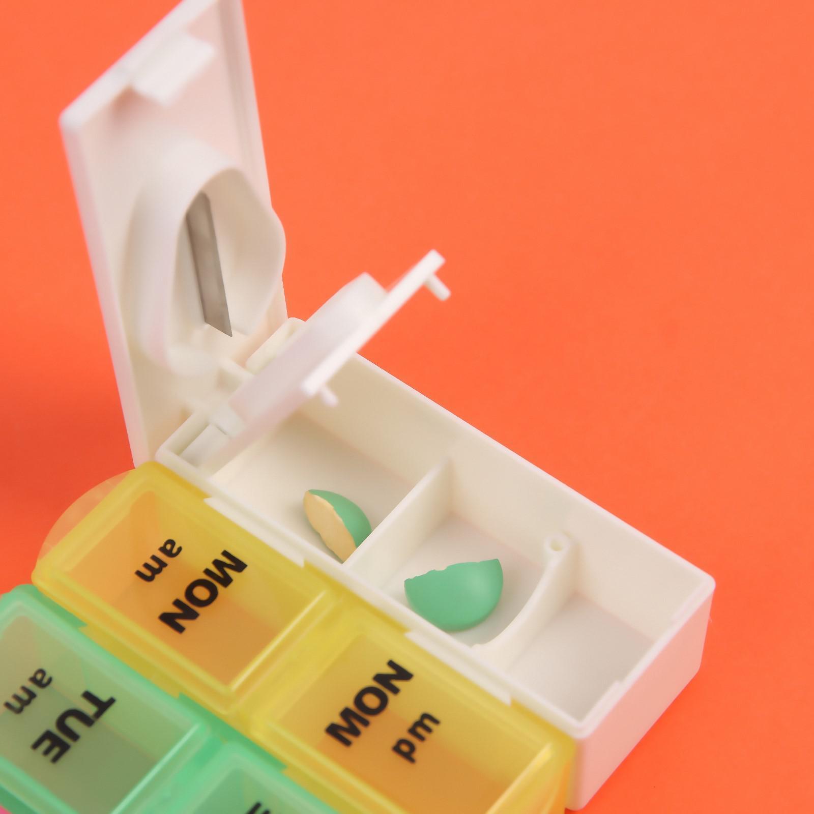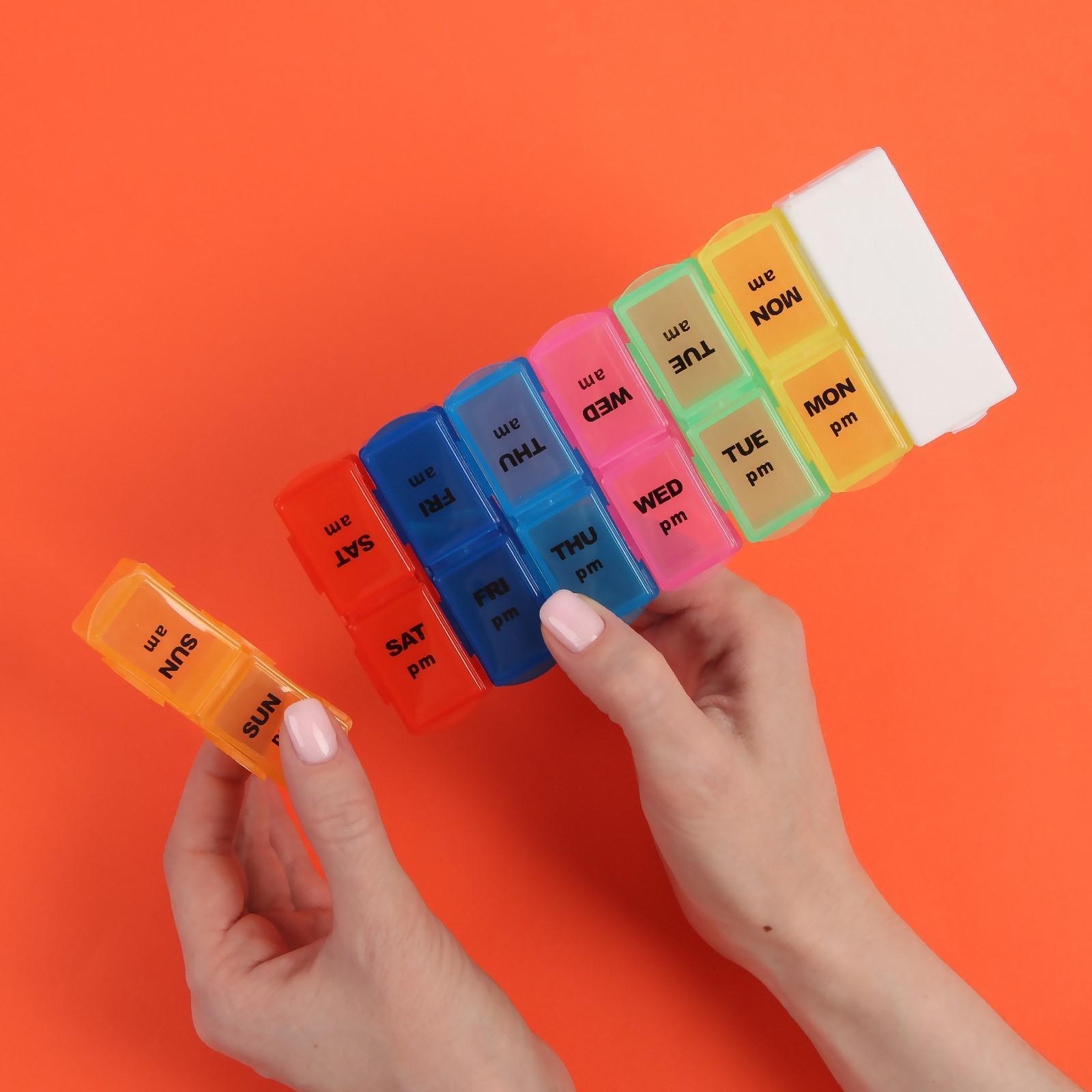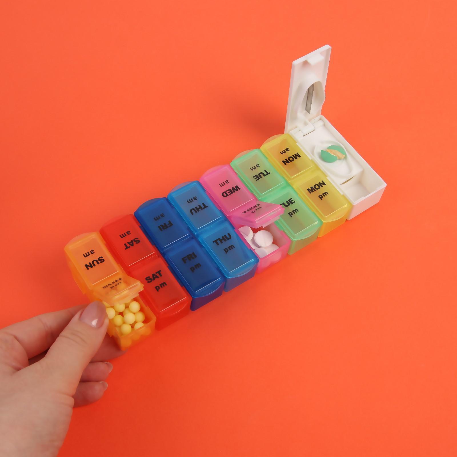 Таблетница-органайзер Неделька, с делителем, утро/вечер, 7 контейнеров по 2 секции, цвет МИКС