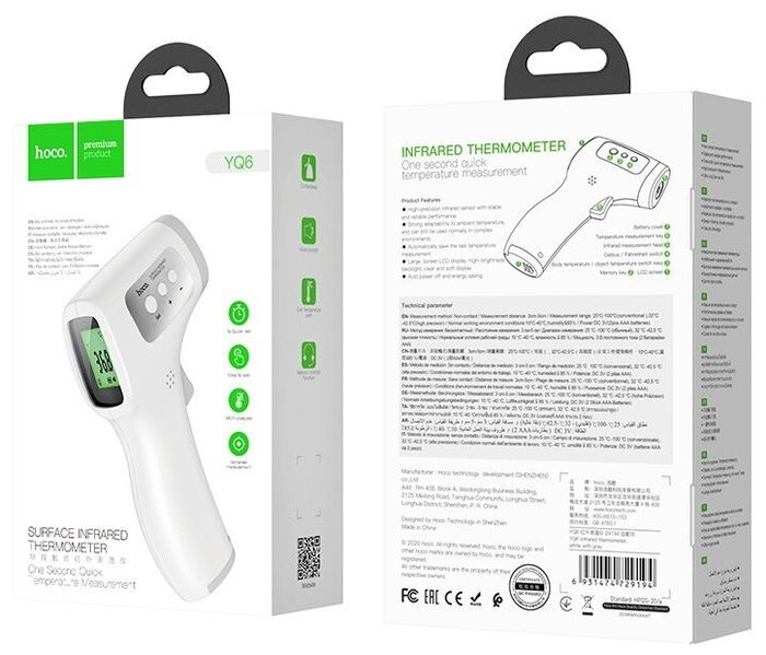 Термометр бесконтактный инфракрасный Hoco YQ6