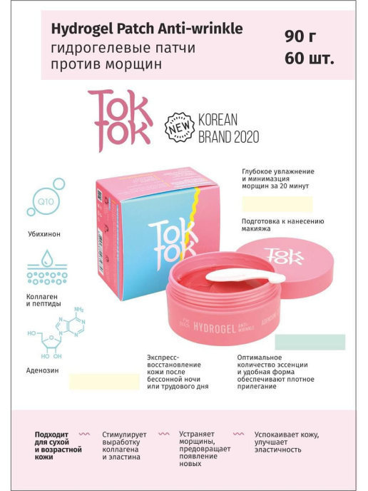 TokTok Гидрогелевые патчи для глаз против морщин 90 гр/60 шт