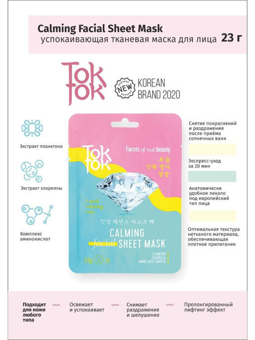 TokTok Успокаивающая тканевая маска для лица 23 г