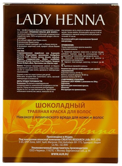 Способ применения: Перед использованием рекомендуется сделать тест на реакцию кожи. Нанесите небольшое количество смеси на внутреннюю сторону локтя и оставьте на определенное время. Если на протяжении 24 часов никакой аллергической реакции не наблюдалось, то краску можно использовать. В посуду из стекла или пластика поместить необходимое количество порошка и разбавить кипятком, доводя до сметанообразной консистенции. Затем нанести готовую массу на волосы и оставить на 30-60 минут. Хорошо промыть теплой водой. Не используйте для окрашивания бровей и ресниц!
