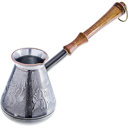 Турка изготовлена из высококачественной меди марки М1М, внешняя поверхность покрыта декоративным черным никелем, внутренняя поверхность – слоем пищевого олова, являющимся безопасным для здоровья. Турка предназначена для приготовления натурального кофе. Медь обладает равномерной теплопроводностью, что позволяет приготовить кофе, отличающийся изысканным ароматом. Узкое горлышко также является положительной характеристикой изделия. Длинная ручка, выполненная из дерева, обеспечивает защиту от ожогов. Подходит для использования на всех типах плит, кроме индукционных. Не подходит для использования в посудомоечной машине. Не допускается нагрев изделия без воды, а также чистка с применением металлических щеток и абразивных моющих средств.