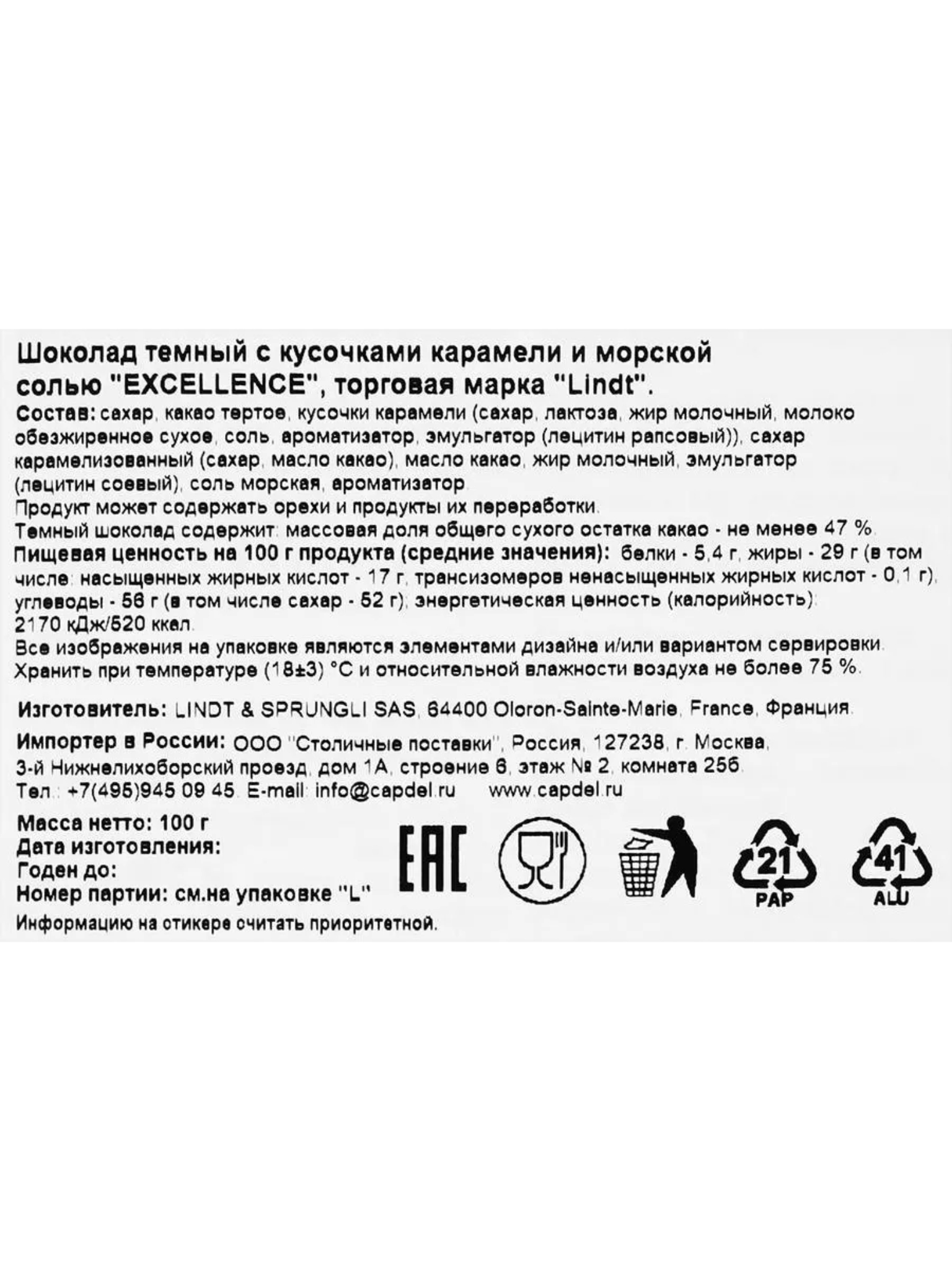 Тёмный шоколад Lindt с соленой карамелью 100 г