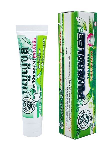 Punchalee Зубная паста на натуральных травах. Благодаря натуральному составу эффективно отбеливает зубы, препятствует образованию зубного камня, удаляет темный налет от кофе, чая и табака, обладает антибактериальным эффектом, освежает полость рта, снижает чувствительность зубов.
